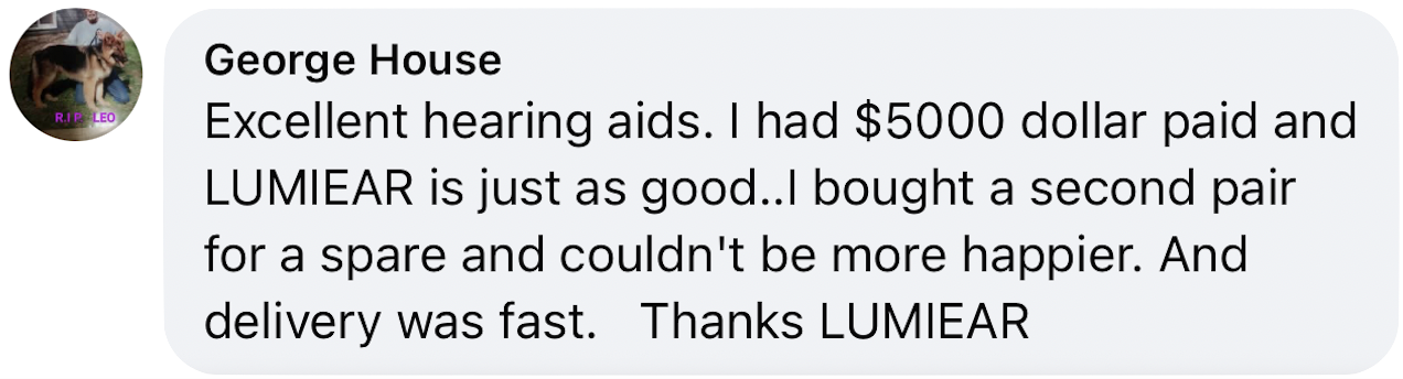 At LumiEar we manufacture all of our hearing aids so we’re able to sell our products directly to our customer with our factory direct prices. In addition, LumiEar hearing aids do not require any tests or fitting which saves you more money and time without all the trips to a specialist.